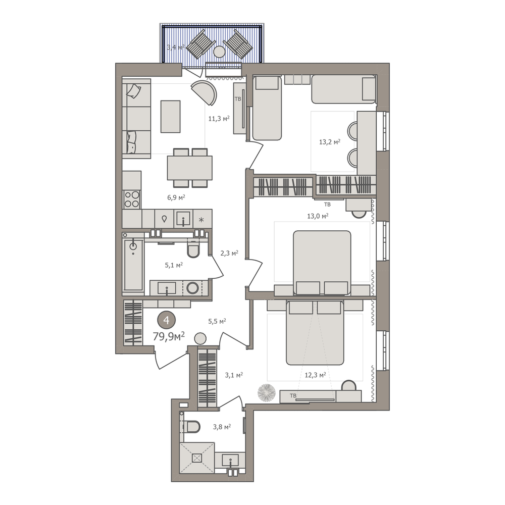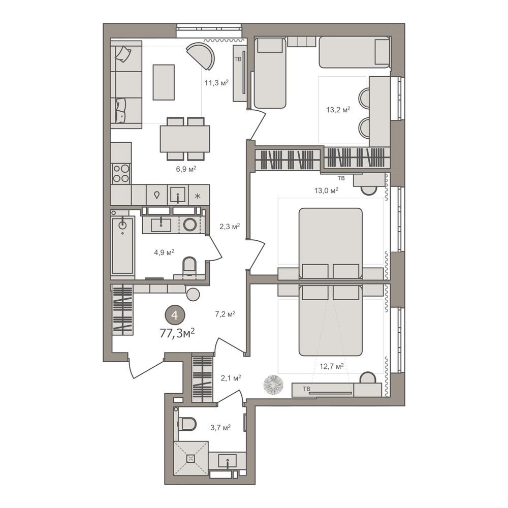 4-комнатная 85.7 м