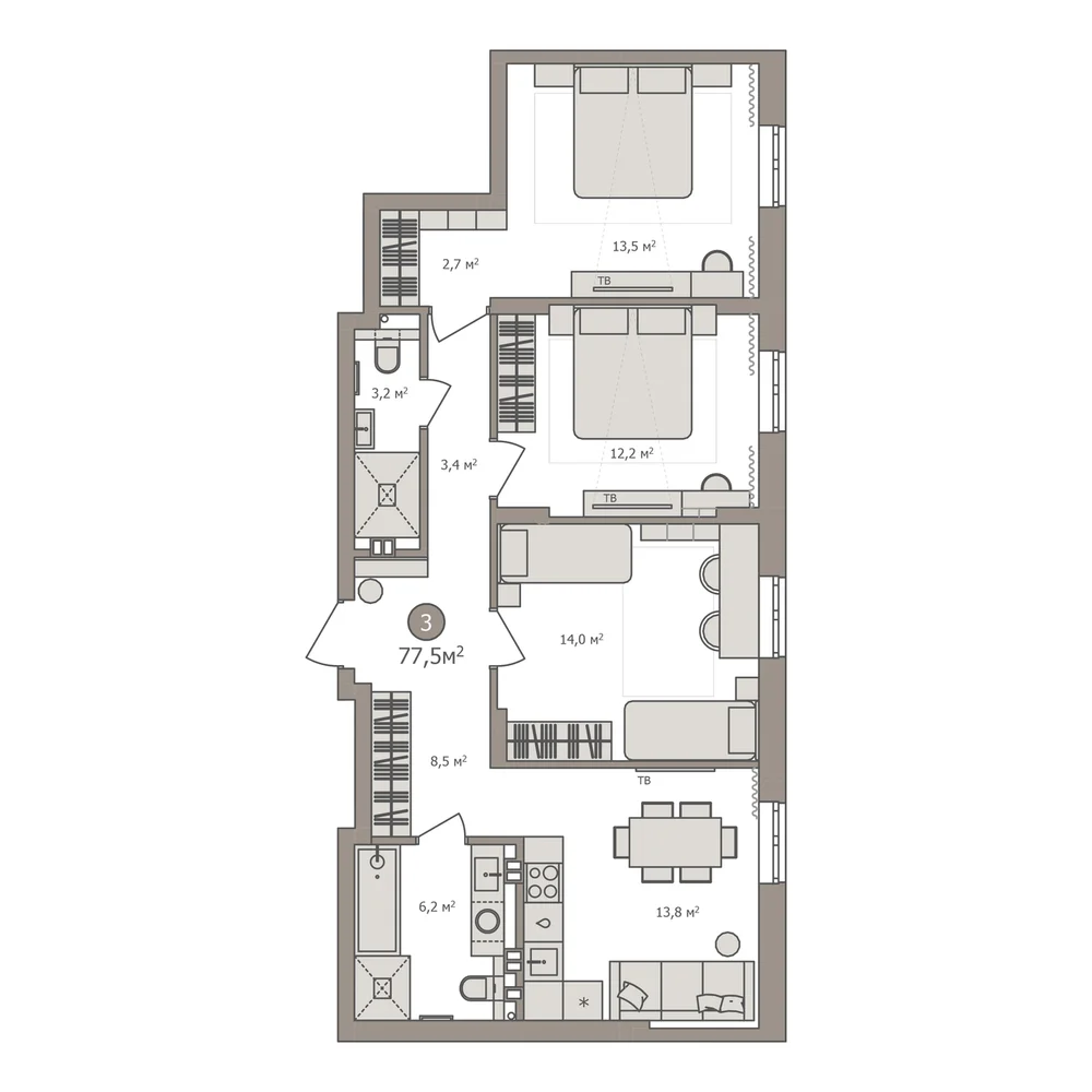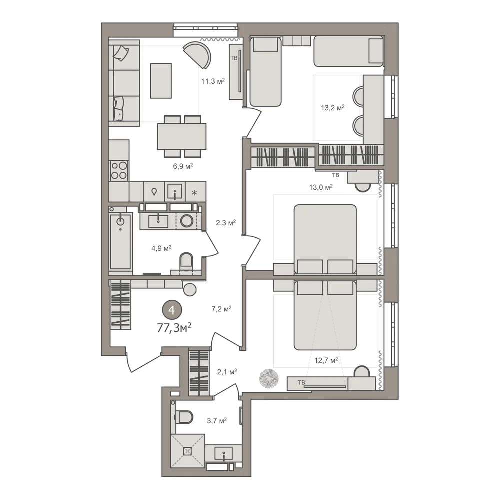 4-комнатная 85.8 м